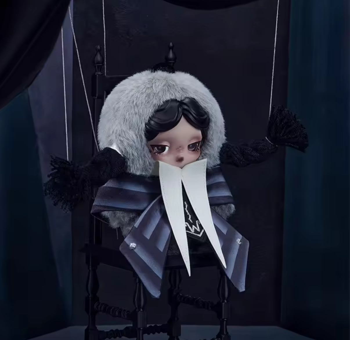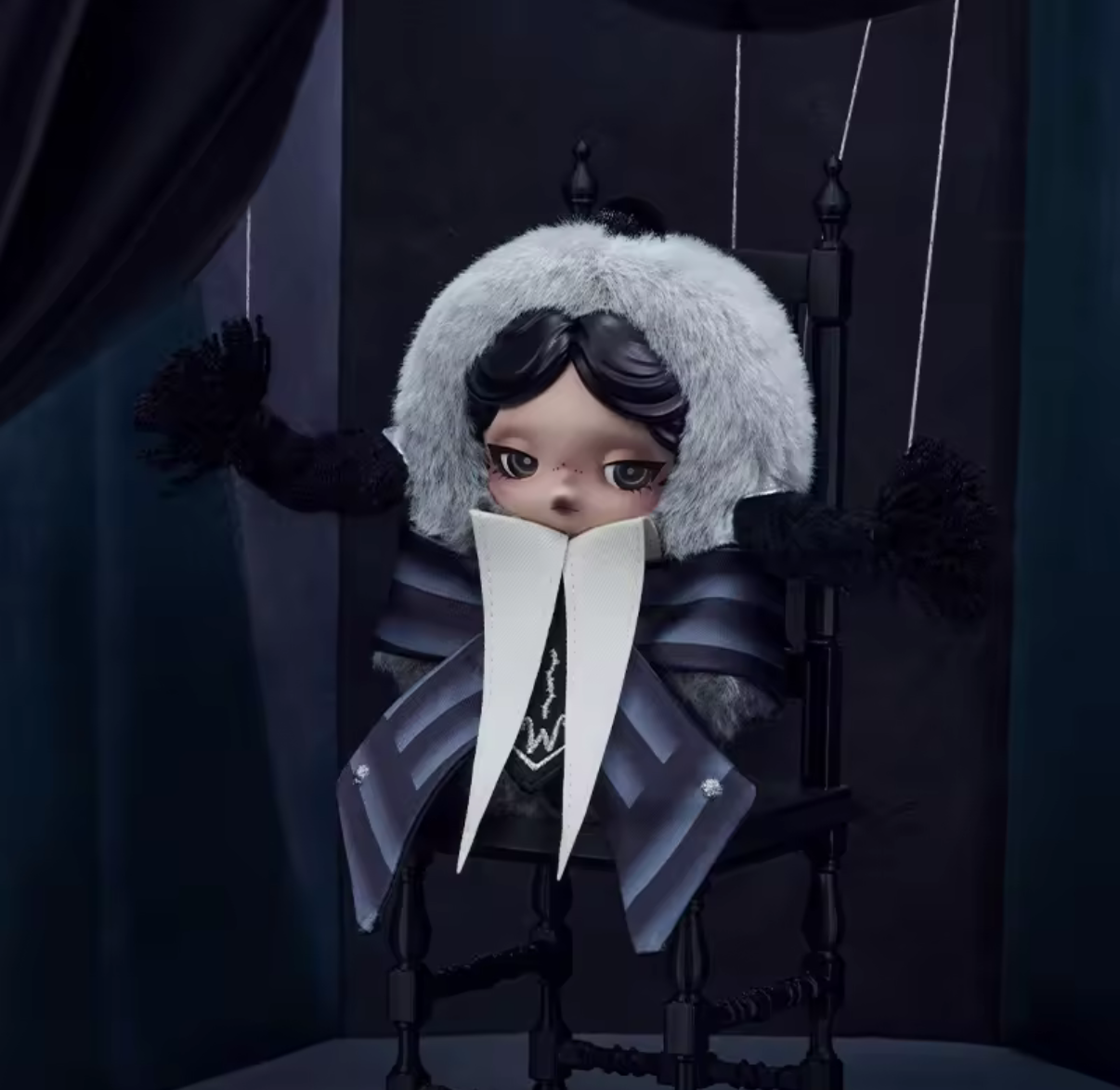 Featuring Skullpanda’s signature melancholic expression and Wednesday-inspired styling